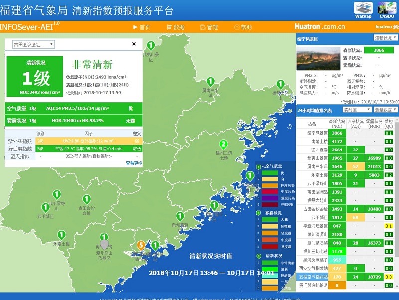AEI-Index生態環境指數監測系統是華創風云針對生態環境指標監測而設計推出的一款系統集成產品。主要由空氣環境指數站、霧霾能見度儀、負氧離子站、藍天指數儀等設備和系統數據收集控制平臺、產品分析應用平臺等產品集成組成 ,實現了對氣溶膠顆粒物和污染物、負氧離子、霧霾能見度、藍光透過率、紫外輻射及相關聯的微氣象因子(包括空氣溫度、空氣濕度、氣壓、降水、風向風速)的連續監測與記錄,同時對空氣清新指數、空氣質量指數、舒適度指數、藍天指數、紫外線指數、霧霾狀況等進行實時生成和發布。