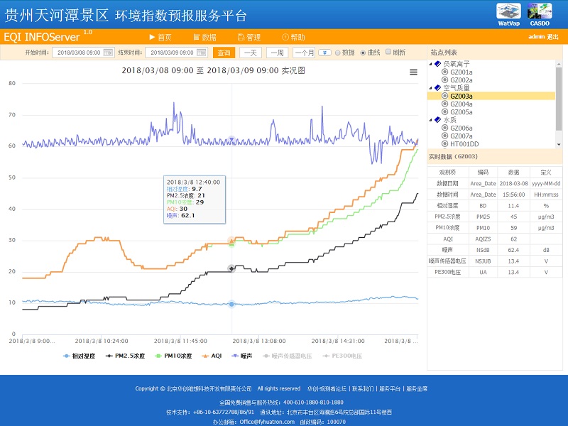 INFOServer-EQI生態環境監測數據平臺是專為景區生態環境主要因素變化監測而設計的用戶定制數據監測平臺。景區的生態環境是由大氣、水體、土地、生物及地質、地貌等組成的綜合體,平臺主要包括景區空氣質量監測、景區水質、水量監測、景區區域降水變化量監測、景區小氣候因子監測、景區視頻觀測和數據發布功能。平臺操作簡捷、界面友好, 可對多數據源進行數據收集存儲,支持環境要素的簡單查詢分析,也可進行復雜的專題科研分析。