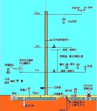 | 測量要素: 太陽總輻射、直接輻射、散射輻射、反射輻射、凈輻射、長波輻射、分光譜輻射及光合有效輻射、紫外輻射、微氣象 |
