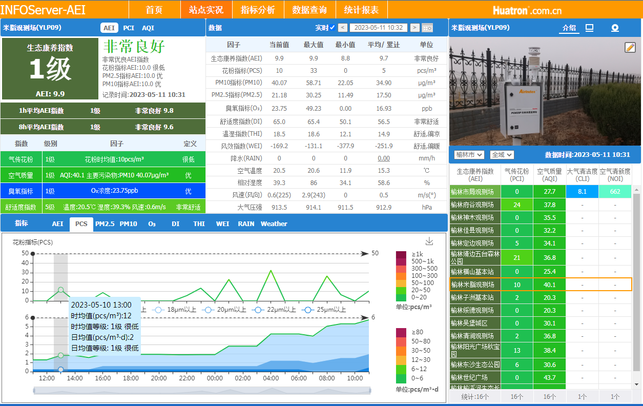 該系統由北京華創維想科技開發有限責任公司承建,并提供該項目的交鑰匙解決方案。項目包括了16套PCM25P花粉濃度監測站等設備以及數據采集控制中心和WEB應用數據發布分析系統。