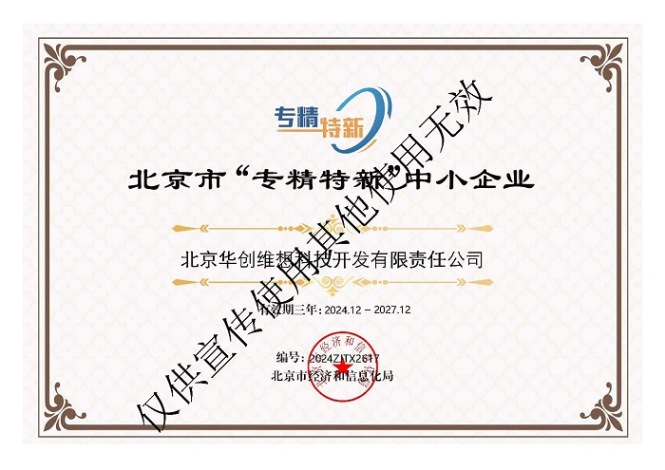 喜報—華創維想獲得北京市“專精特新”中小企業證書