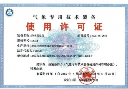 2016年5月25日,中國氣象局氣象探測中心根據《氣象專用技術裝備使用許可管理辦法》和《氣象專用技術裝備使用許可申請業務技術審查辦法(試行)》的有關規定,對北京華創維想科技開發有限責任公司的PS32降水現象儀使用許可進行了詳細的業務技術審